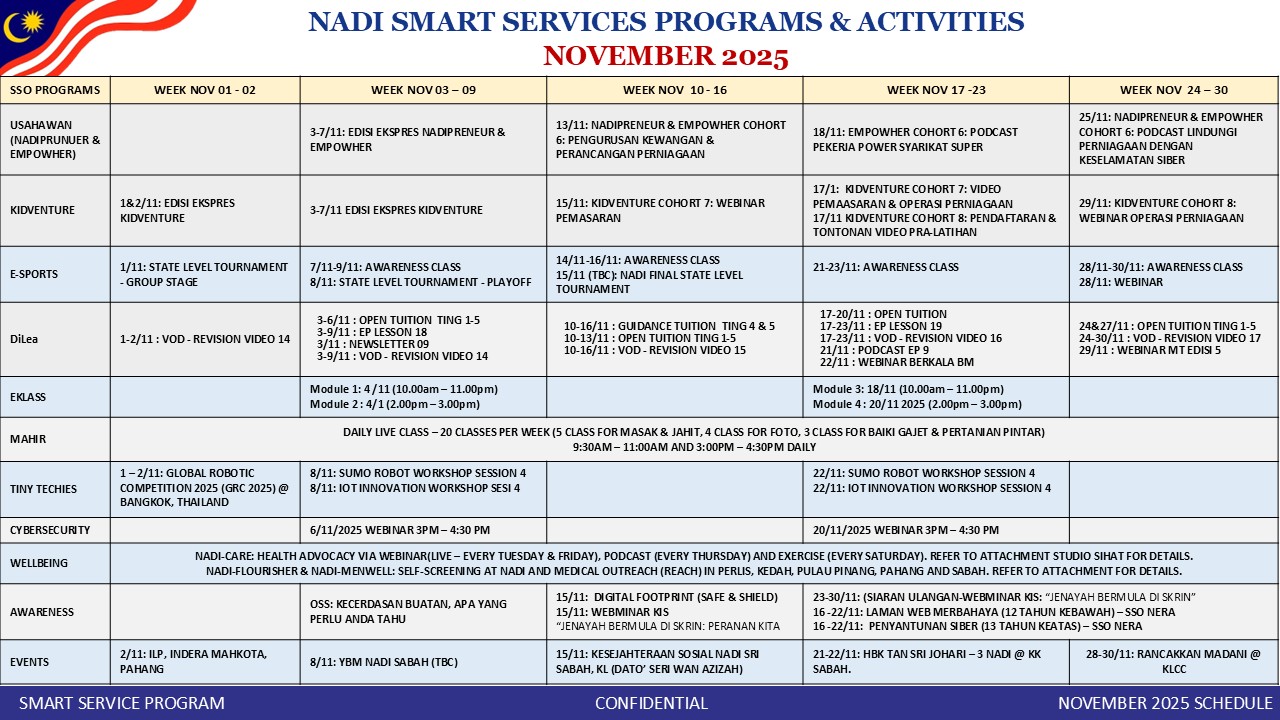Tarikh : 21 Julai 2025 (Isnin)Taklimat Waspada Berita Palsu Terbuka kepada peserta berumur 12 tahun ke bawah. Masa : 0300pm – 0400pmTaklimat Perisian Berbahaya Terbuka kepada peserta berumur 13 tahun ke atas. Masa : 0400pm – 0500pmLokasi : Bilik […]