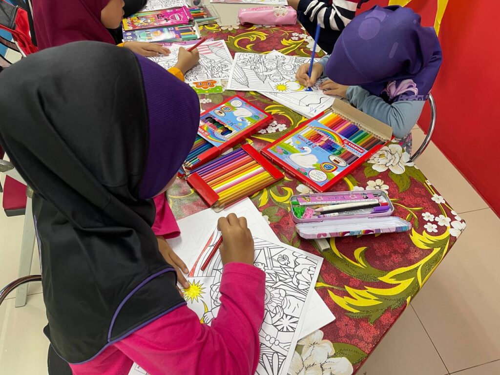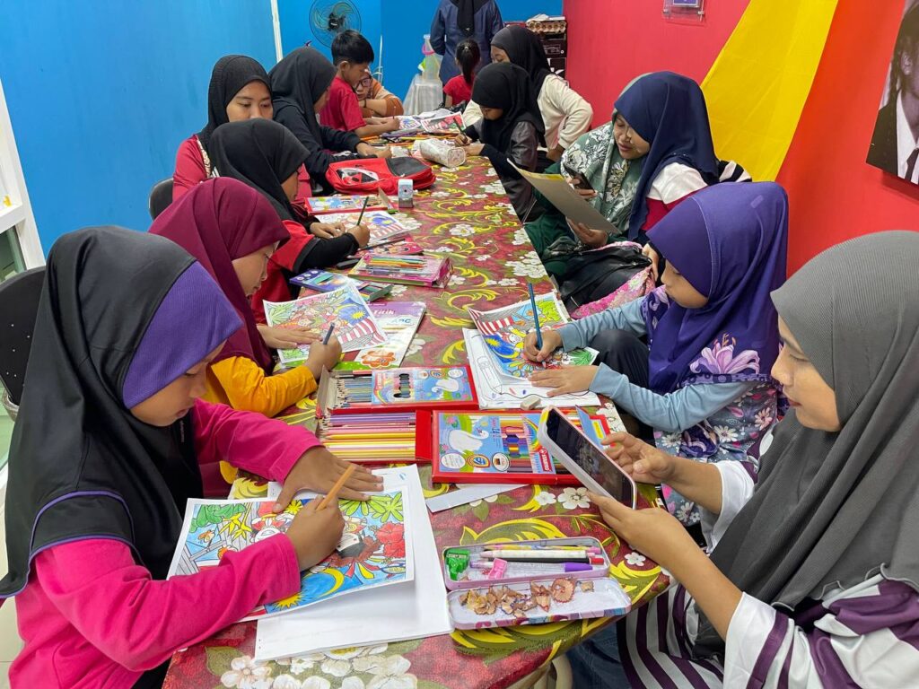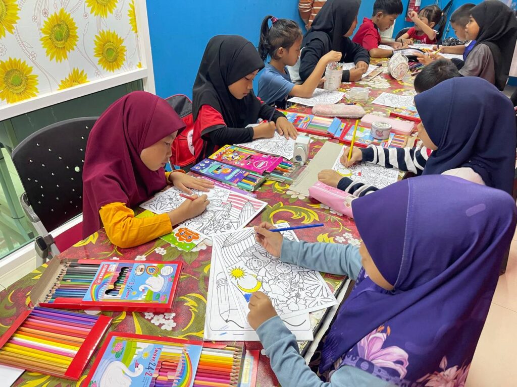 AKTIVITI : Aktiviti pertandingan ini melibatkan kanak-kanak mewarna gambar bertemakan Merdeka mengikut kreativiti masing-masing. Hasil karya mereka akan dinilai berdasarkan ketepatan tema, kreativiti serta kemasannya, sebelum pemenang diumumkan di akhir sesi.